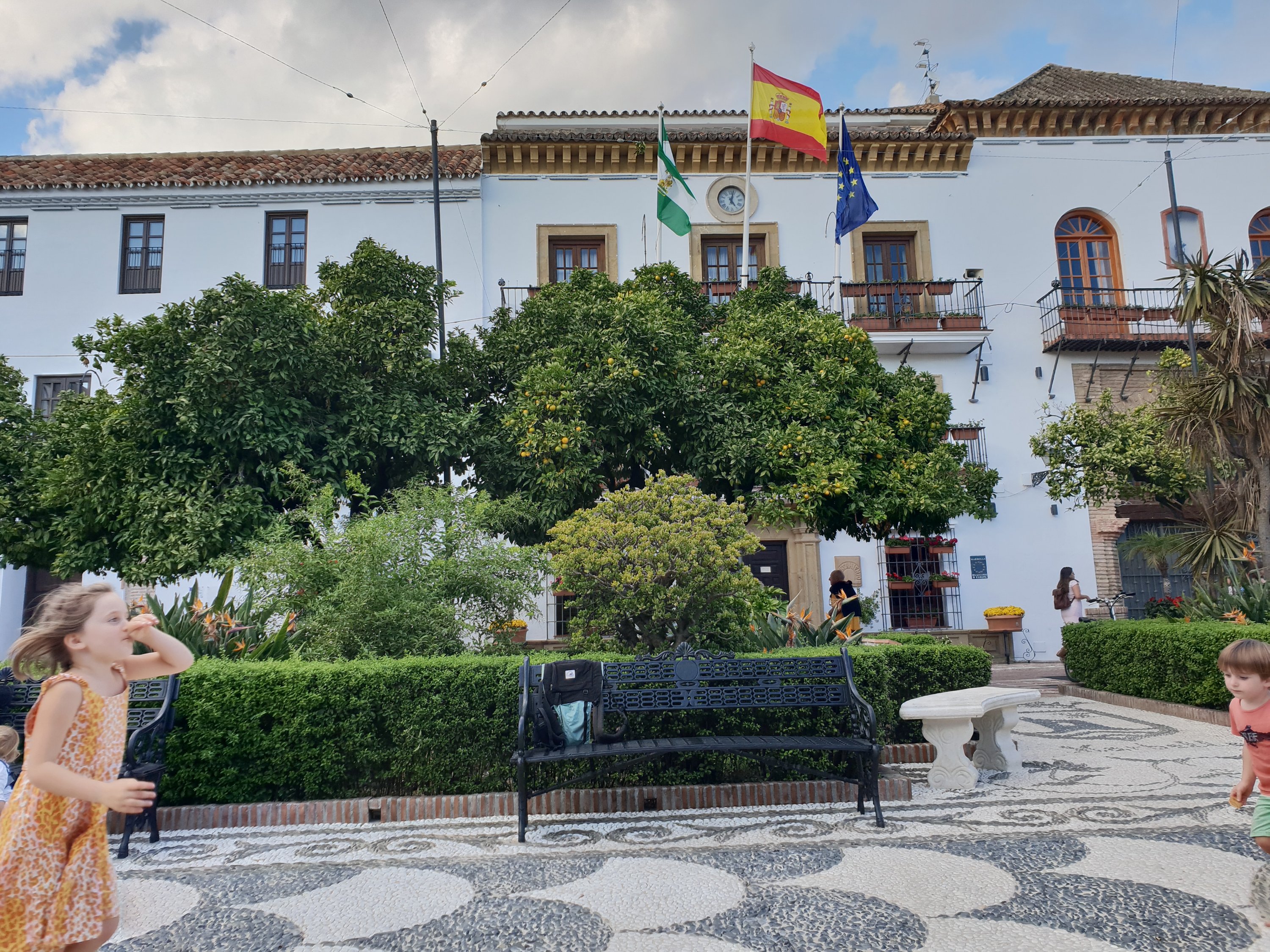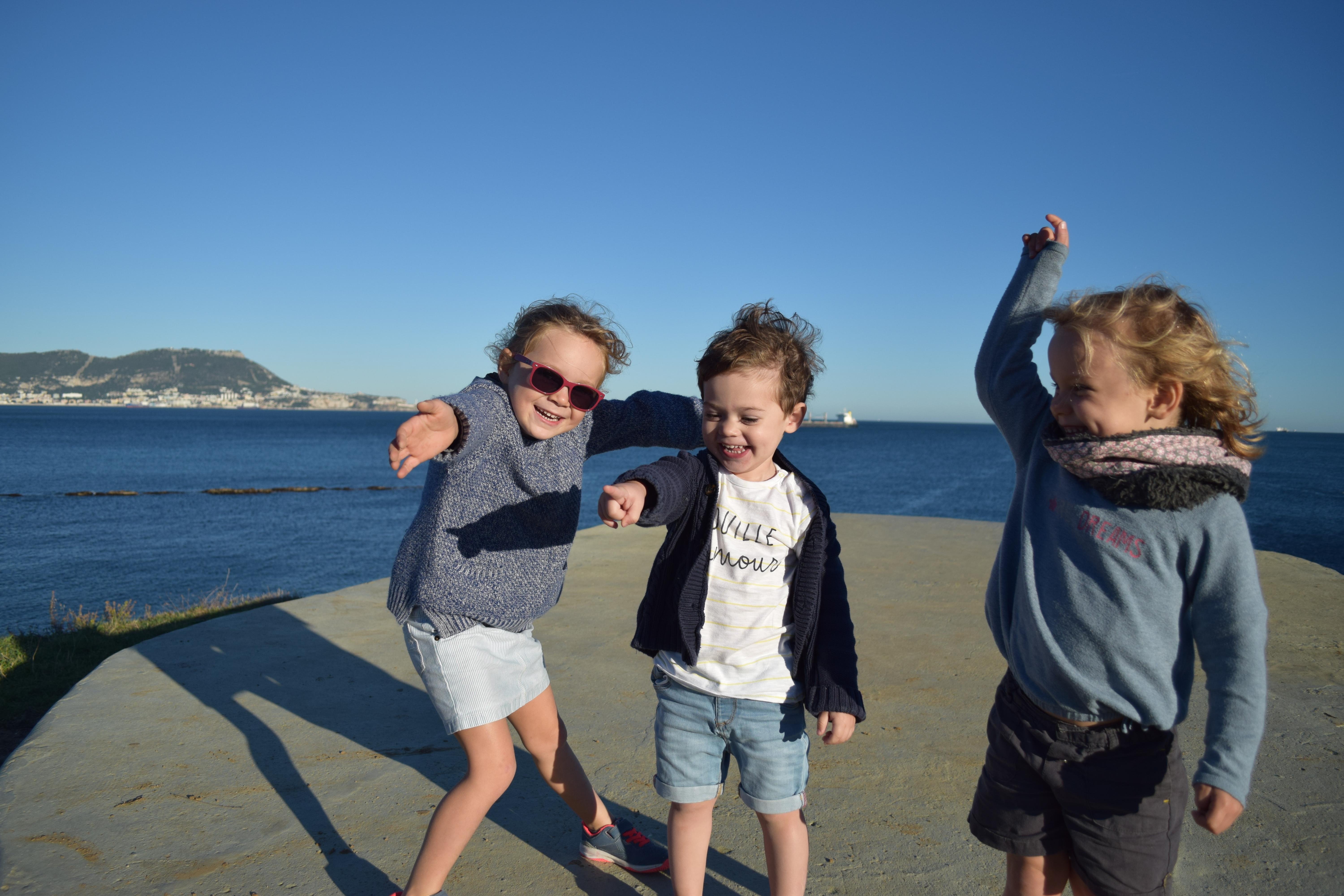 Virées à la journée: j’ai eu la chance de venir sur un weekend de 4 jours pour nos 2 petites écolières franco-espagnoles ce qui a facilité les excursions longues, notamment à Algésiras près de Gibraltar où Bart est tombé grâce à son instinct hors norme sur un petit parc financé par l’Europe, duquel nous avions une vue imprenable sur le rocher de Gibraltar (pour la petite minute culture, territoire anglais de 6.8 km² avec un sommet à 426 mètres, 30 000 personnes y vivent et 60 000 entreprises y sont implantées, donc Géraldine y trouvera facilement un emploi au cas où 🙂 , dans les méandres du paradis fiscal… bref ceci est une autre histoire).