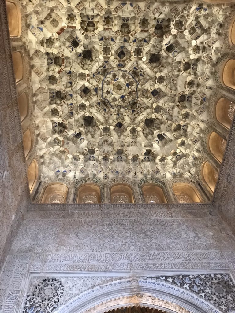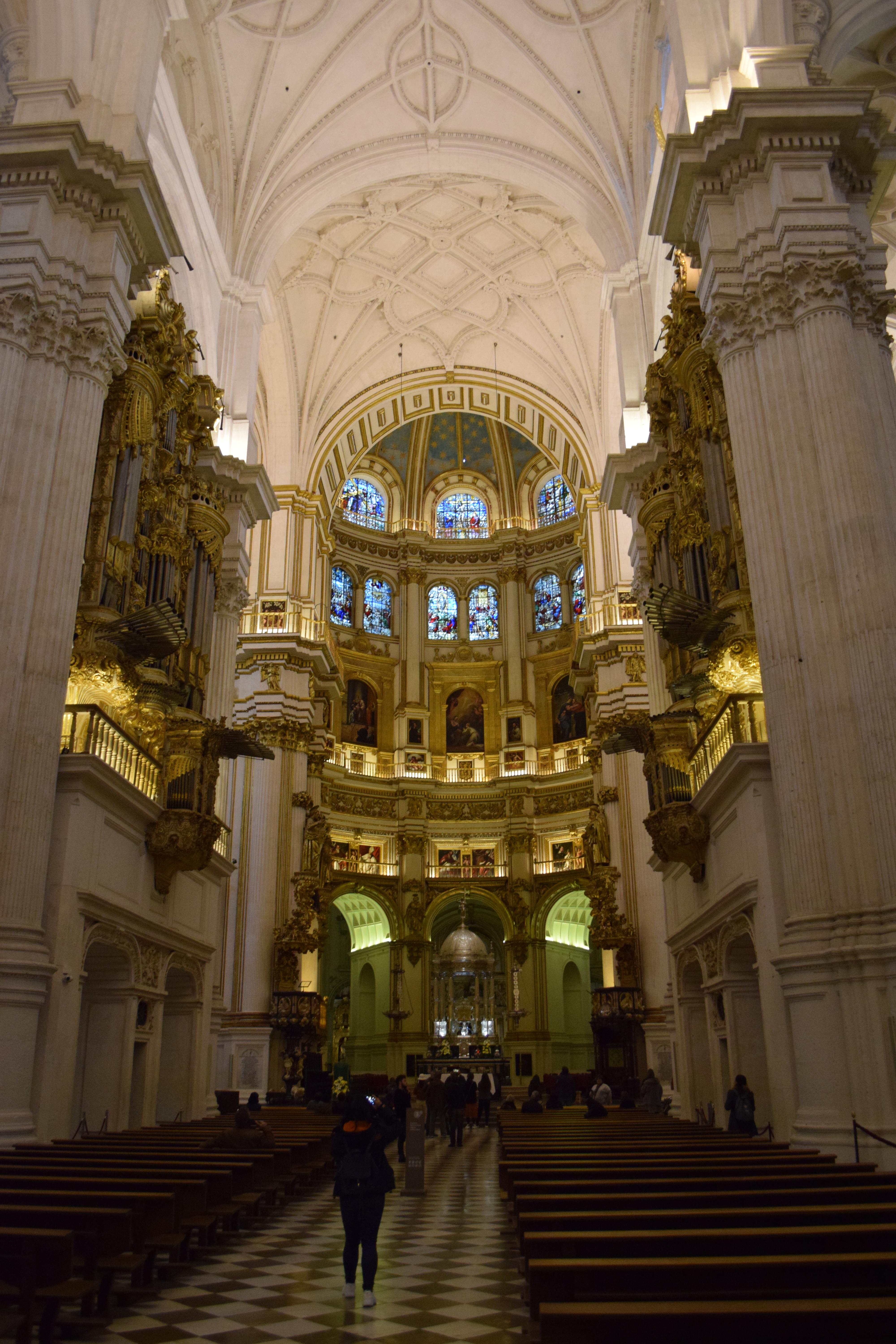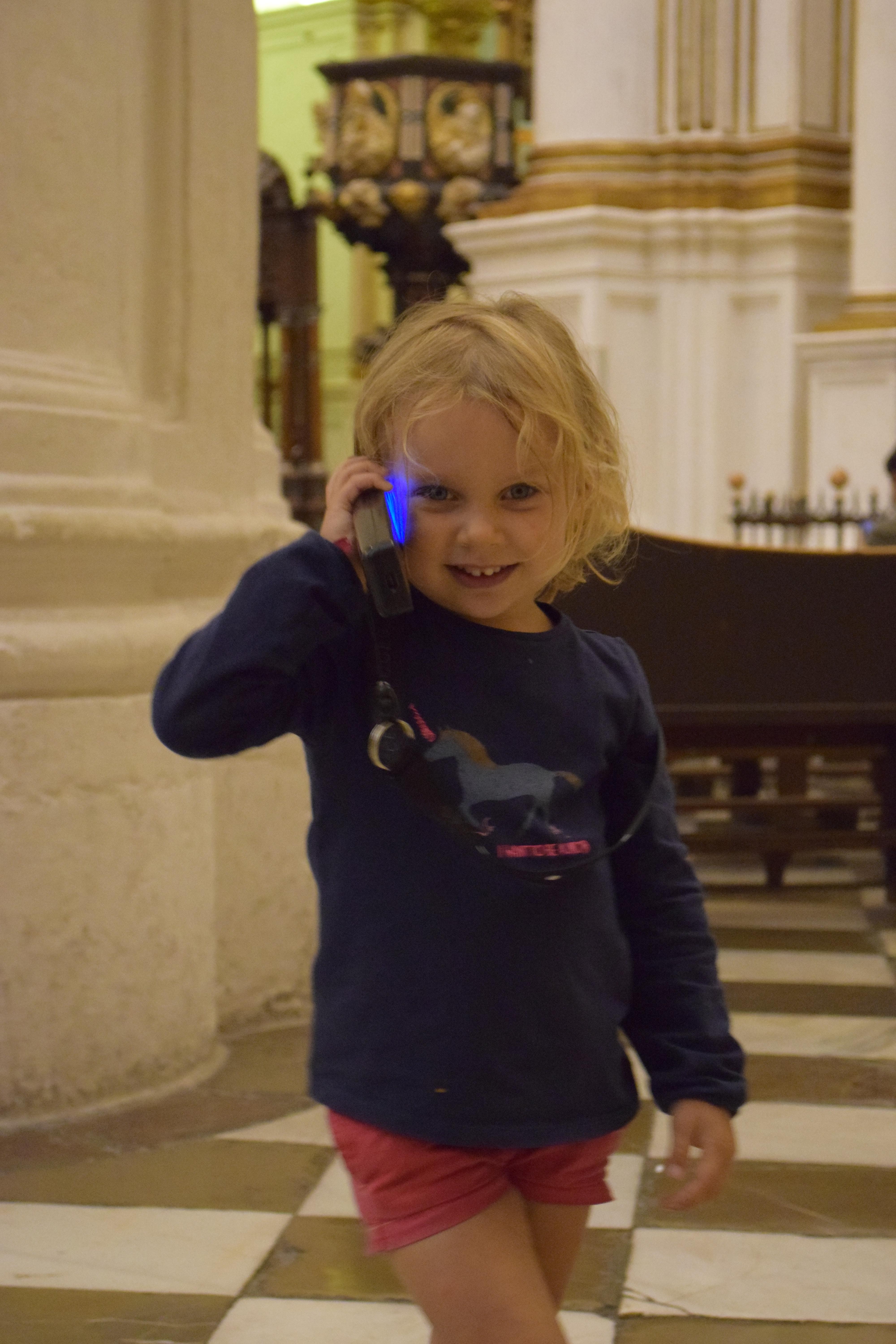 Et, que dire de Grenade? La beauté de la visite commence sur la route avec une vue qui tue sur la Sierra Nevada, chaîne montagneuse aux sommets enneigés, et également par une explosion de cultures (je l’ai placé!!) où l’architecture arabe (fort présente notamment à l’Alhambra) côtoie une architecture baroque-gothique à travers la cathédrale de l’Incarnation (merci wiki!). Même les enfants étaient tels des fantassins, armés de leur audioguide, intéressés et envahissant les espaces de la cathédrale, Clémence étant même interpellée par une information sur la statue de Saint-Paul (#jadoremonécole) installée dans la niche d’une porte non loin d’un retable à coté de la voûte … Oui, je ne l’ai pas trouvé faute de concentration … ou de complexité des informations données par l’audioguide… cela dit très intéressant ! A court de munition “heures”, nous dûmes rentrer dans nos quartiers, après une journée bien chargée, toutes les troupes étant de toute façon épuisées.
