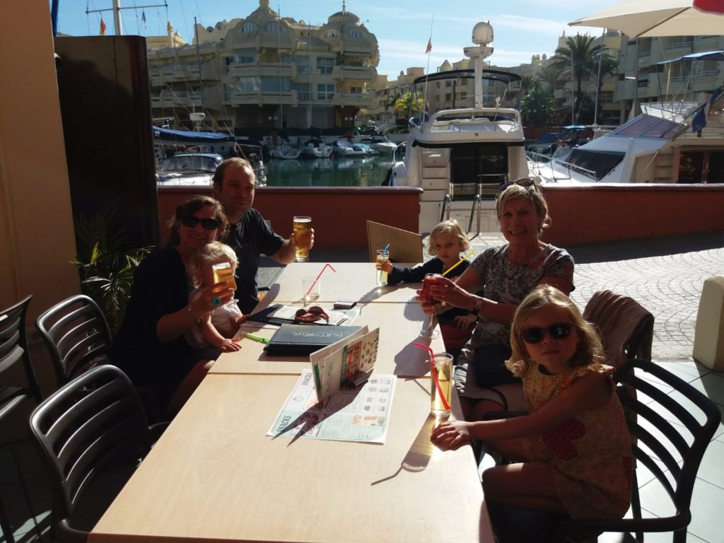 Avant de profiter pleinement de ces vacances, parlons un peu du weekend dernier… Samedi matin, en route pour les urgences de Fuengirola !!! Une chute de caddie suivie de vomissements pour Camille… Plus de peur que de mal, mais une belle frayeur quand même ! On terminera par une journée plutôt calme. Après avoir récupéré Tita, un saut sur La Cala histoire de se dégourdir les jambes et d’admirer leur joli sapin de noël 🙂 . Et à l’apéro 😉 .