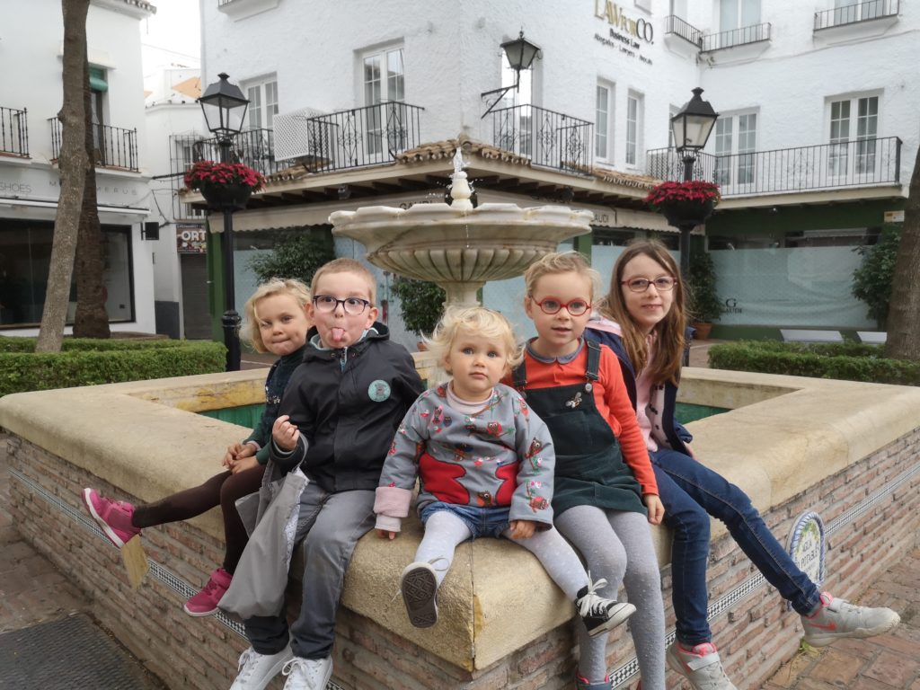 On retrouve FĂ©licie et David avec leurs 3 enfants, apĂ©ro, repas et on file direction Mijas Pueblo, le village Ă cĂŽtĂ© dans les hauteurs. La ville des balades en calĂšches, tirĂ©s par des Ăąnes.. mais nous on est pas des touristes.. Comme il y avait du soleil, nous sommes partis en short t-shirt, on a juste oubliĂ© que nous Ă©tions dans les hauteurs, donc qu’il faisait un peu froid (oui, câest vrai il Ă©tait 19h, donc je pense que câest un peu normal)