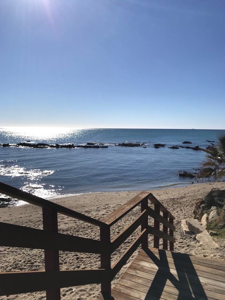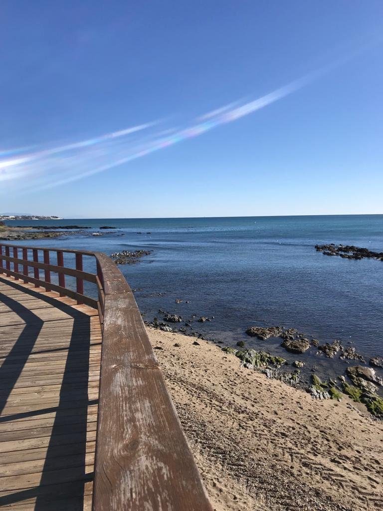 Entre repos et ballade Ă la Cala, la premiĂšre journĂ©e (le 31 dĂ©cembre) fut reposante comme il fallait, un magnifique bord de mer oĂč une allĂ©e de bois permet de longer la plage avec vue sur le Maroc svp..